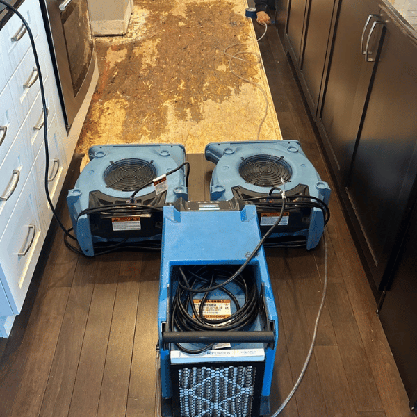 Our team began by removing damaged flooring in the kitchen to expose saturated subflooring. This step allowed for proper airflow and ensured that trapped moisture could be effectively addressed.